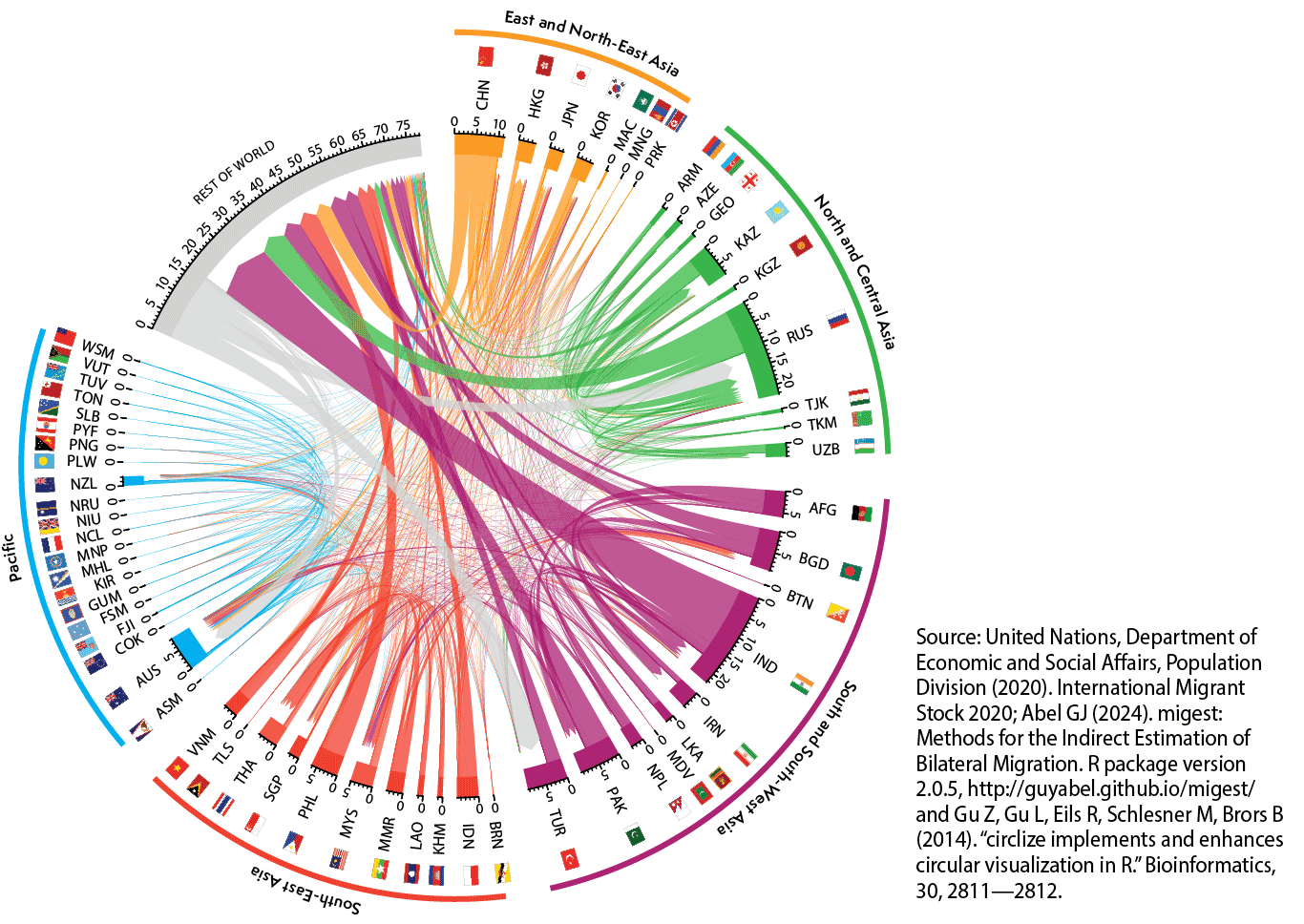 International migrant stock by subregion in Asia and the Pacific, 1990–2020